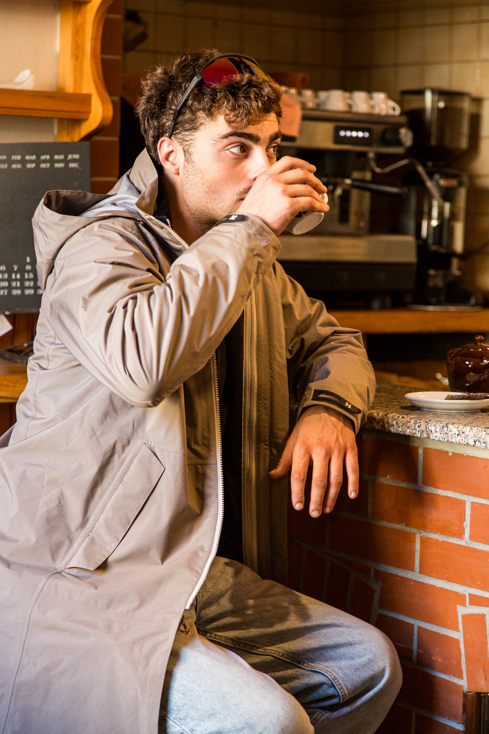 The coat doesn’t hide its origins: specific features ensure a seamless blend of technical performance and everyday suitability. To guarantee maximum freedom of movement, both the coat and the inner jacket feature two-way zippers. The straight cut with pre-shaped sleeves ensures high wearing comfort without restricting the silhouette.